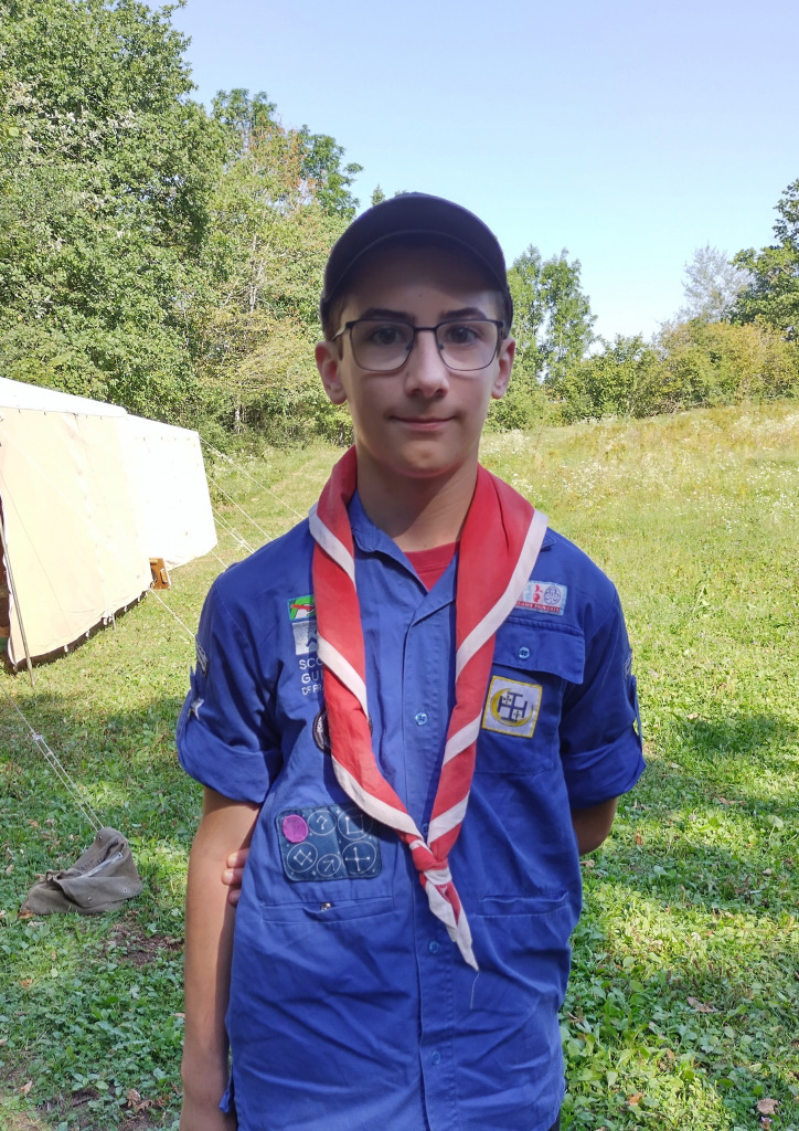 C’est la fête du Samuel, mais c’est également le jour de son départ en camp. Avec sa chemise et son foulard, pris à la dernière minute avant le départ, nous l’avons déposé à deux heures de route de chez nous, dans le Jura.