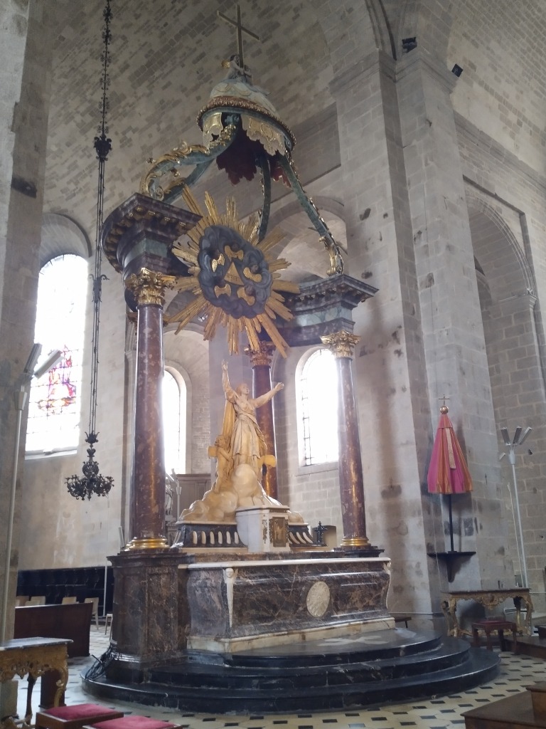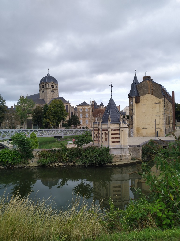 Nous avons poursuivi notre circuit en passant à côté de la Halle aux Toiles, la place à l’avoine, l’église des Jésuites transformée en médiathèque. Un passant nous a gentiment dit qu’il fallait rentrer dans la médiathèque car les boiseries du 18°siècle valaient le coup d’œil. On a essayé, mais il fallait prendre rendez-vous à cause de la Covid. Par contre, il nous a dit de pousser la porte de la Halle au blé pour admirer la coupole en verre, ce que nous avons fait.