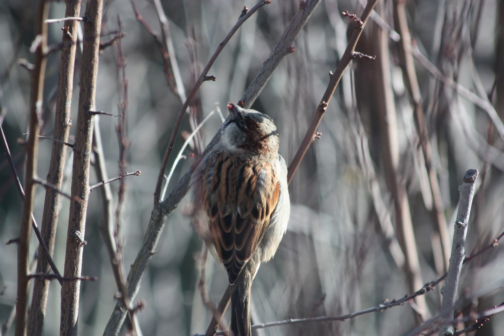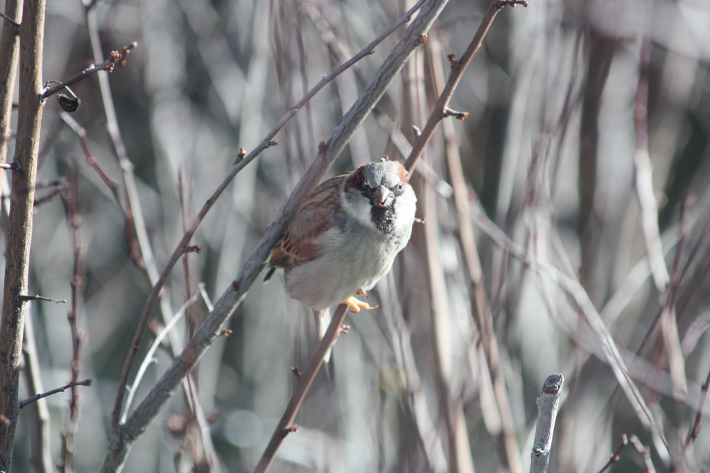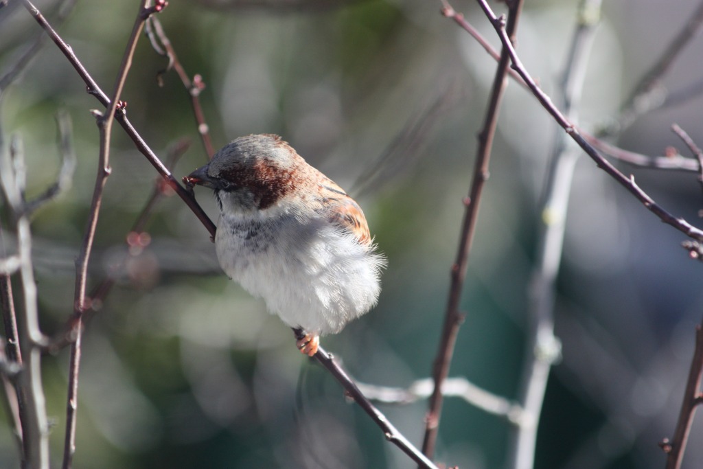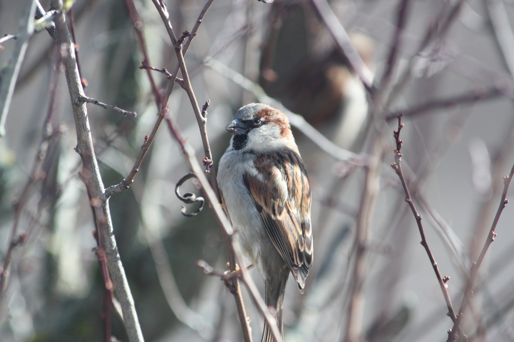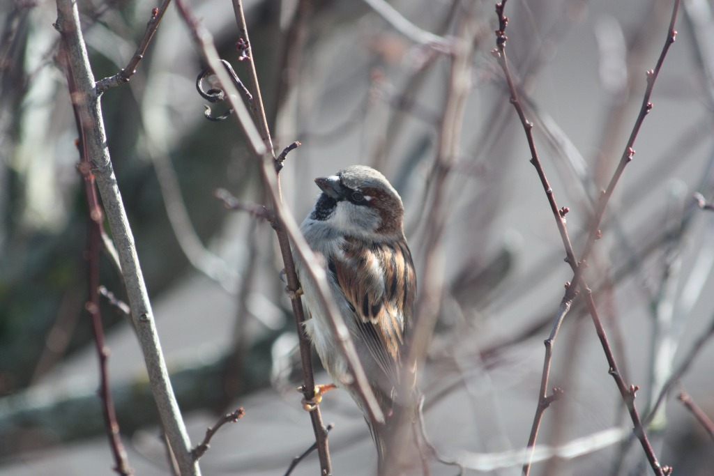 Le soleil s’est invité entre deux dépressions météorologiques. L’occasion pour les moineaux de manger les bourgeons et pour moi de sortir l’appareil photo… (à travers la vitre de la cuisine).