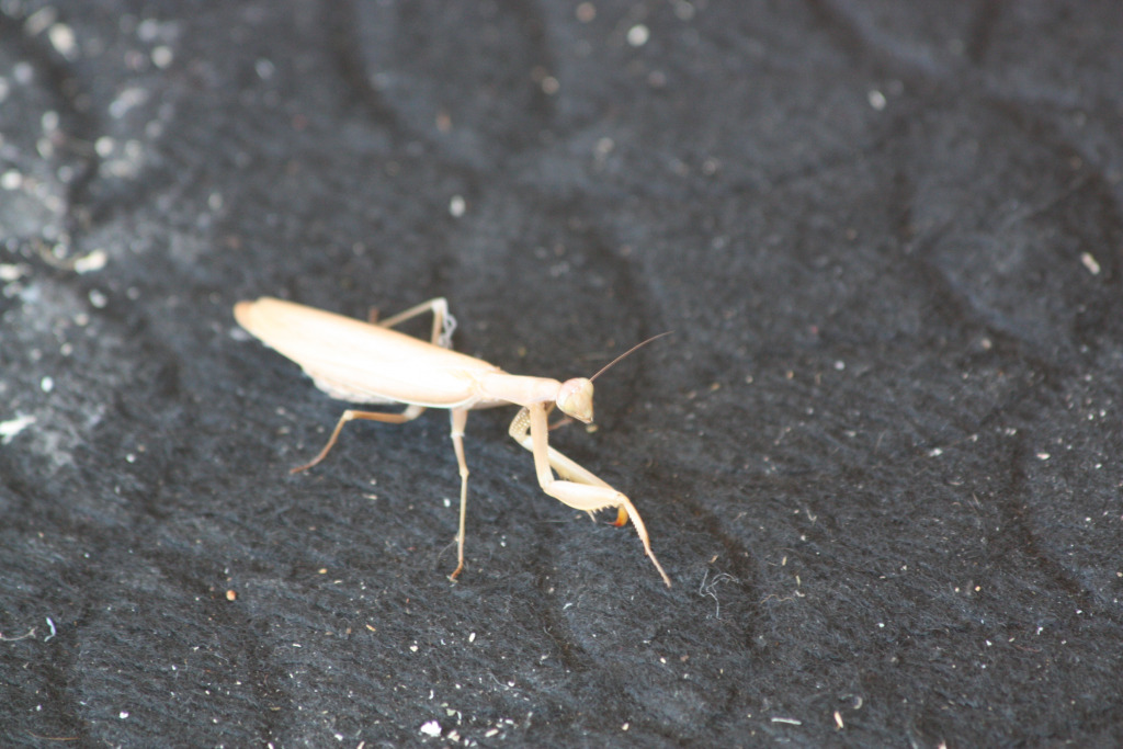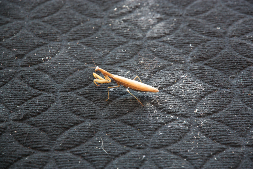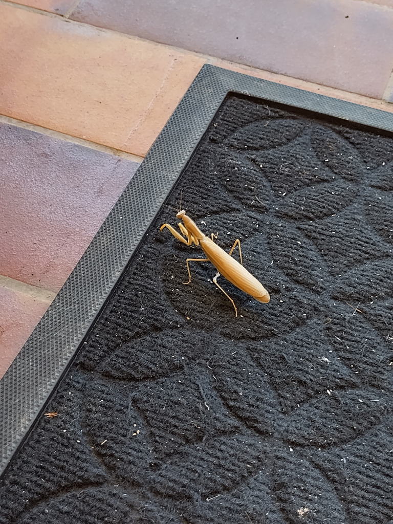Non, juste une araignée et une mante religieuse de passage sur le paillasson. Les araignées, on en a régulièrement.
