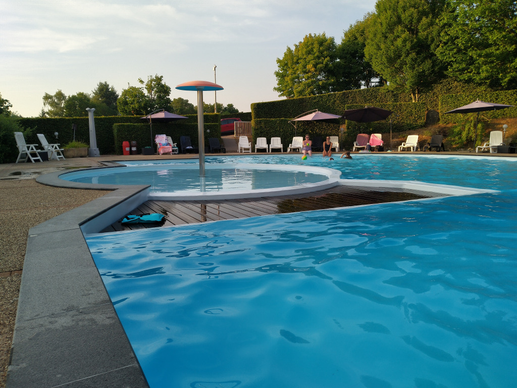 Le soir, nous avons profité de la piscine en nocturne et avons même fait notre première baignade sous la pluie (2 fois 2 minutes, l’orage tournait autour).