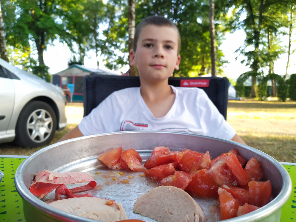 Nous sommes partis tous les trois pour 4 jours au camping vers Épinal. Le jeudi, c’était l’installation, la découverte du lac et la première baignade.