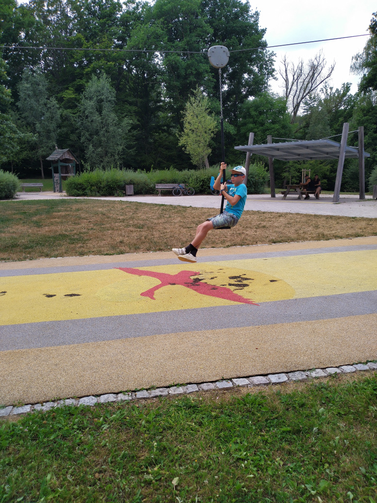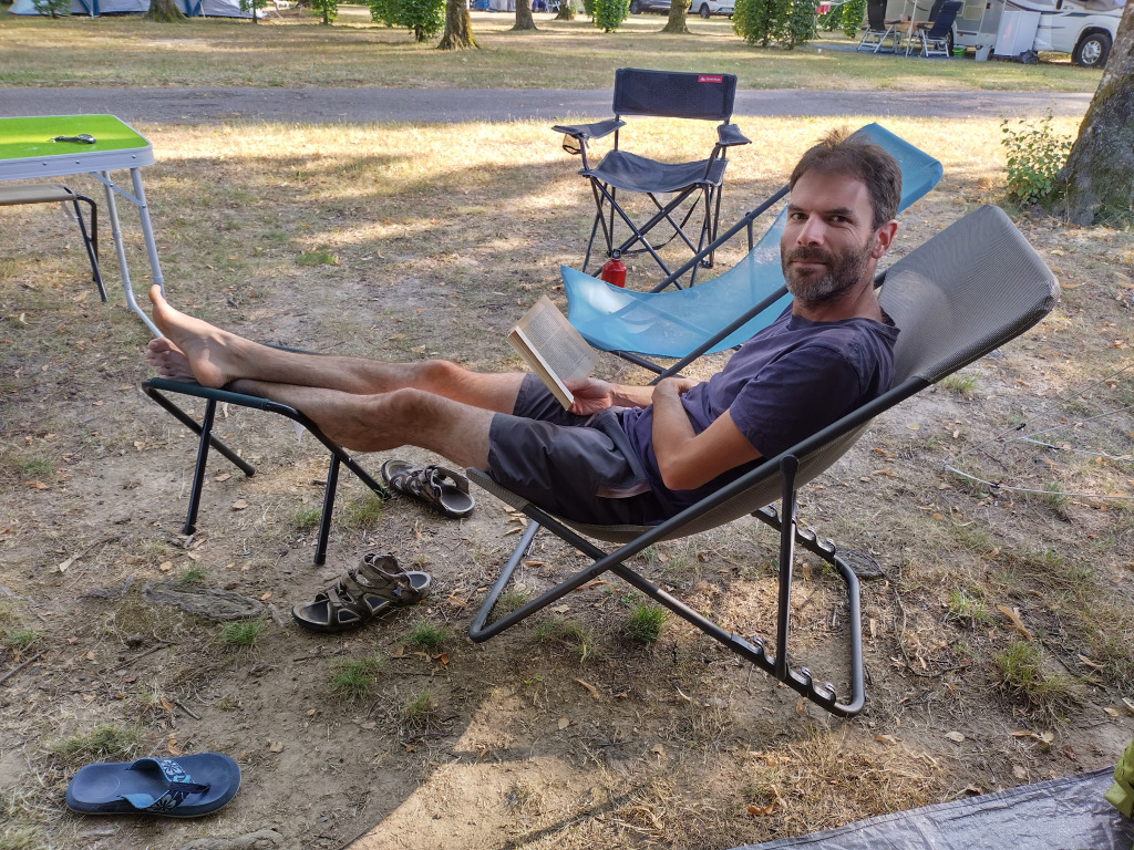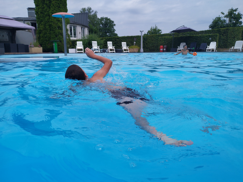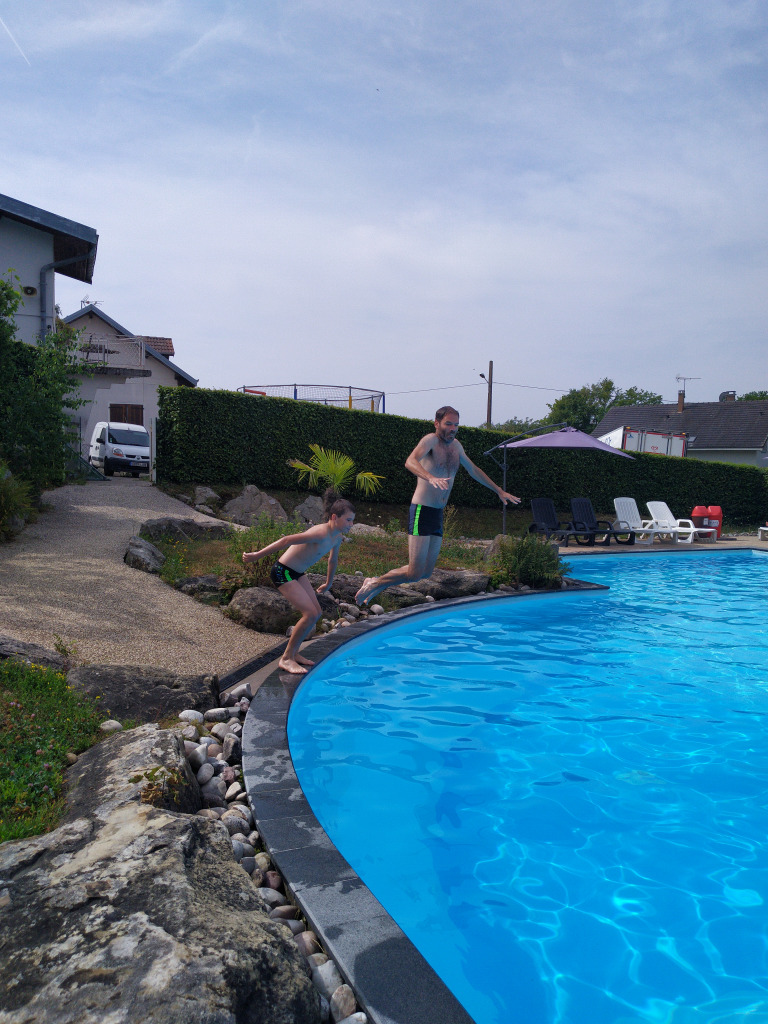 Samedi, on est resté sur place. Piscine matin et soir. Ping-pong. Tour du lac. Un bon programme.