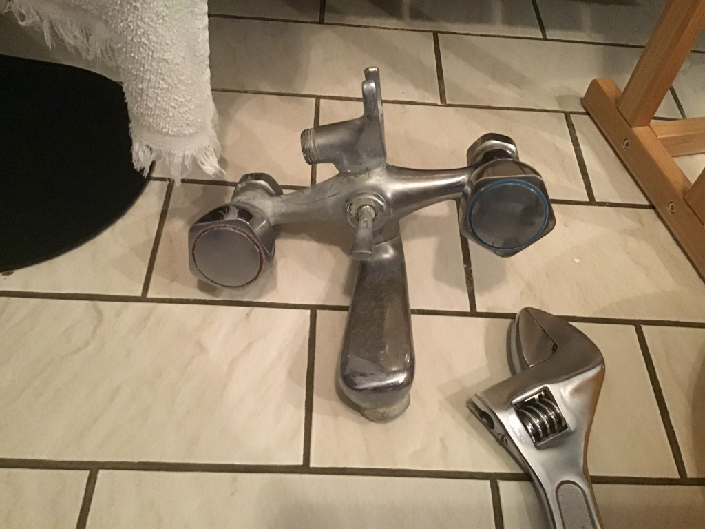 Cet après-midi, Jean-Christophe a remplacé ces vieux robinets… (l’eau chaude s’arrêtait toute seule et nous mettions du temps à trouver la bonne température.)