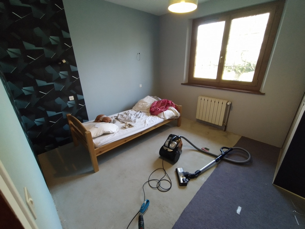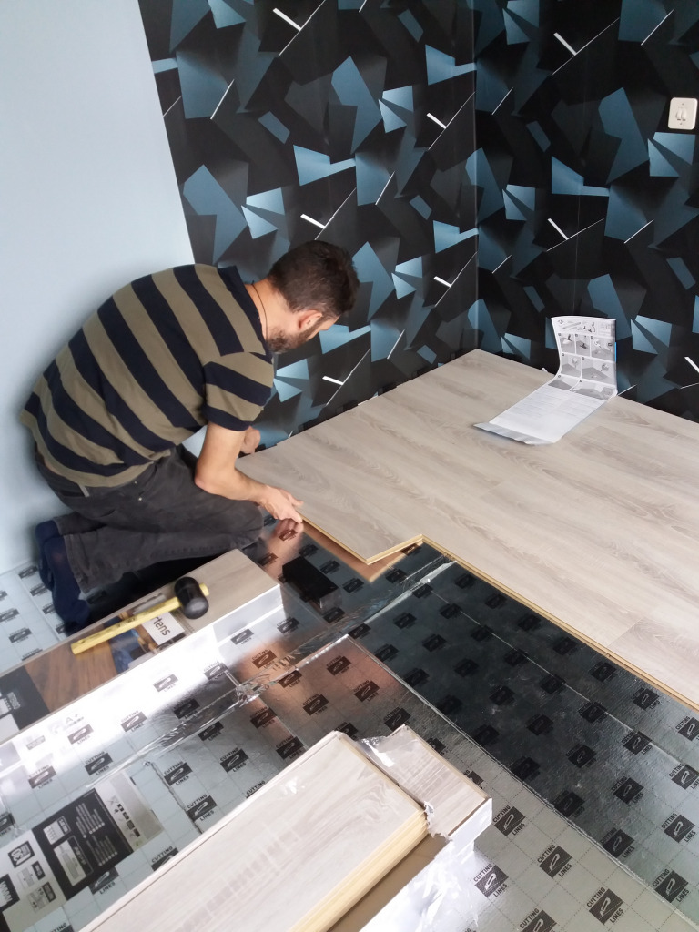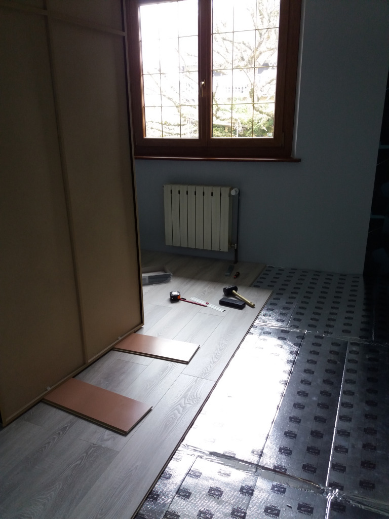 Ce soir, le parquet est posé, mais il y a eu un couac avec les plinthes, ce sera donc pour demain et ensuite, la chambre de Samuel sera finie.
