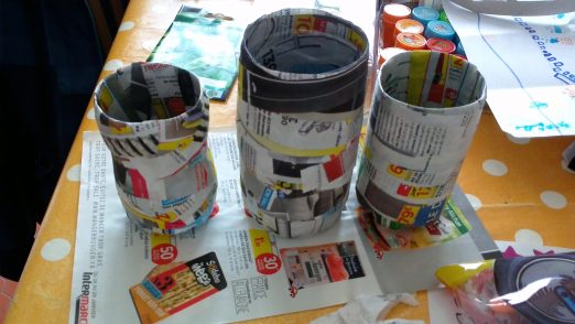 J’ai proposé une nouvelle activité aux enfants : le papier mâché. Ça a plu à Nathanaël, Samuel n’a pas du tout accroché.