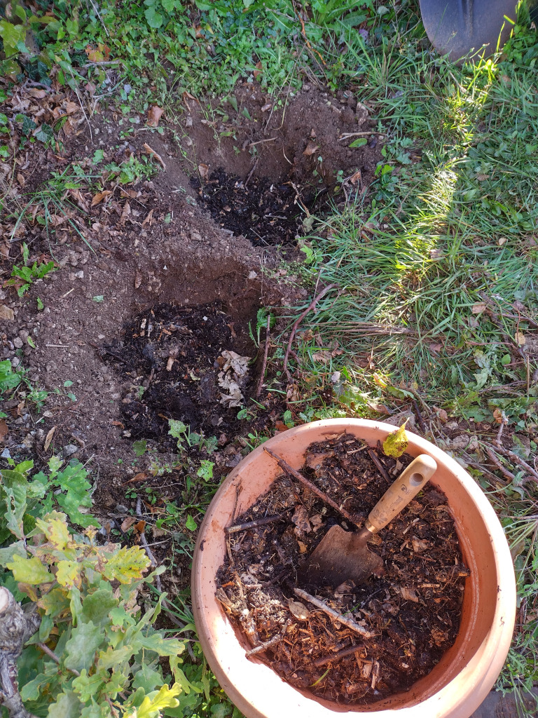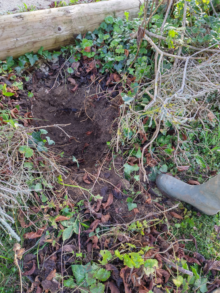 Décidément, il y a à faire au jardin. Aujourd’hui, encore des trous pour remettre des hêtres dans notre haie.