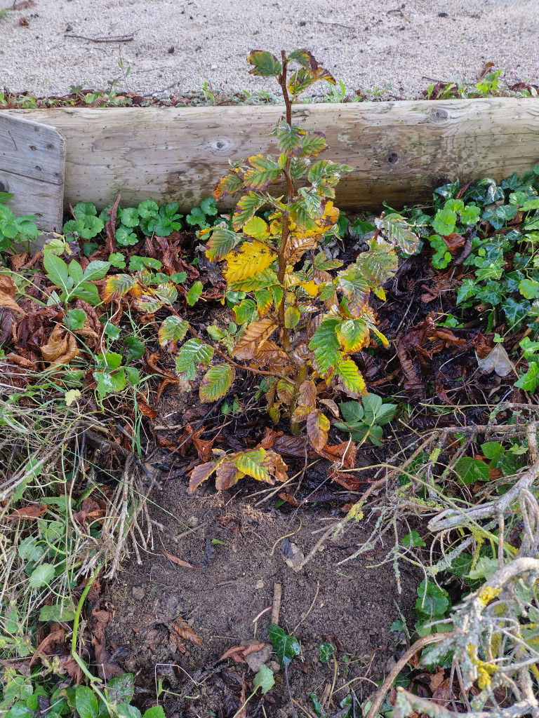 Alors on est parti de l’autre côté de la maison, et on a planté notre charme commun à la place d’un sapin mort.