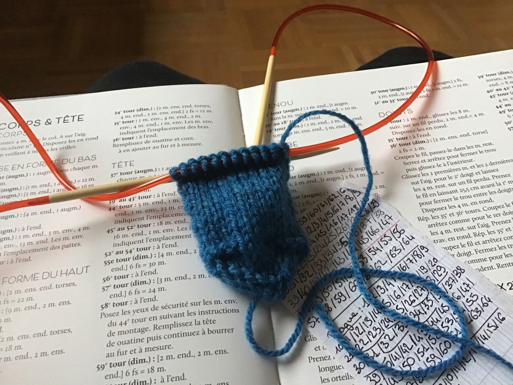 Nathanaël a commencé hier soir un doudou avec des chaussettes orphelines. Ce soir, Charles est fini.