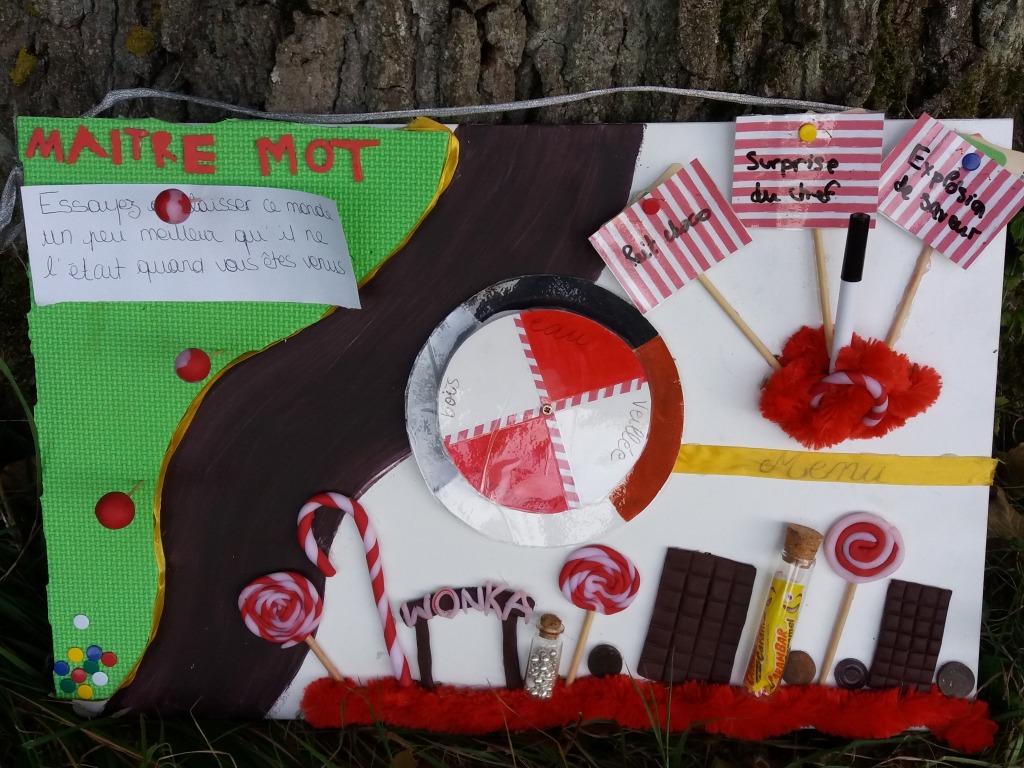 Tout au long de l’année, l’imaginaire des louveteaux était sur le thème de Charlie et la chocolaterie. Ils ont donc vécu un camp assez chocolaté. 😉 Il y avait des espions qui souhaitait voler une recette, des oompa loompas, des veillées et un défi cuisine. Chaque groupe devait préparer un morceau du repas avec bien entendu, du CHOCOLAT. Les BRUNS (groupe de Samuel) étaient chargés de l’apéro (tomate cerise au chocolat parsemée de graines de sésame) tandis que les NOIRS s’occupaient du plat principal (pâtes et poulet à la mexicaine, c’est à dire avec du piment et du chocolat).