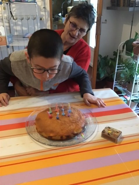 Mes parents étaient de passage chez nous le week-end dernier, du coup, on en a profité pour fêter avec quelques jours d’avance les 66 ans de mes parents et les 10 ans de notre Samuel.