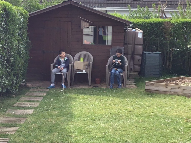 Voici nos deux pêcheurs. La ligne est en tricotin, faut bien que ça serve !