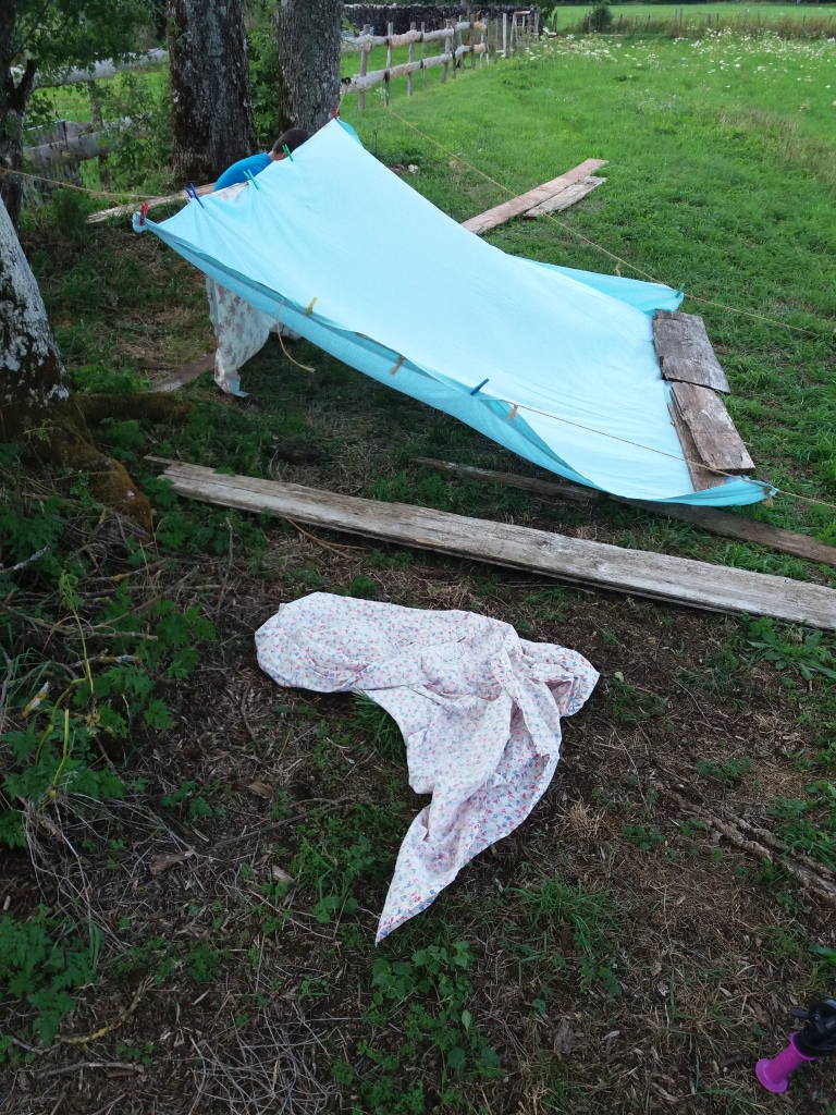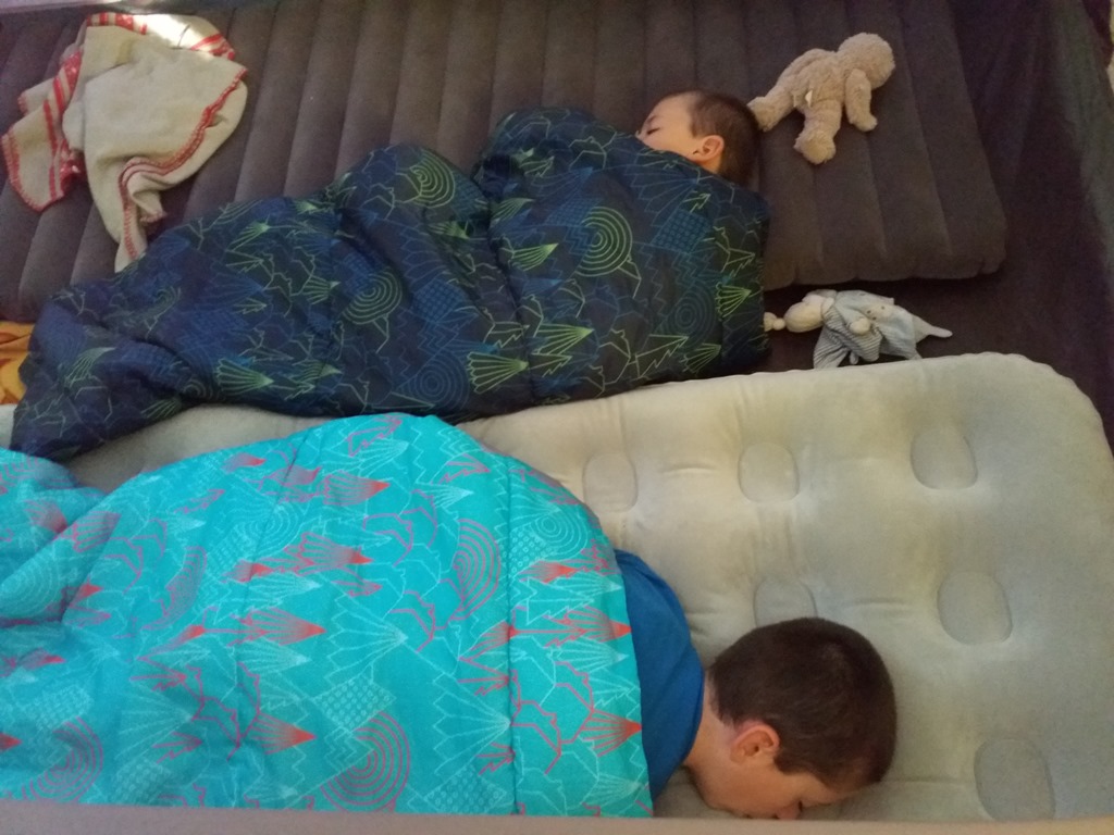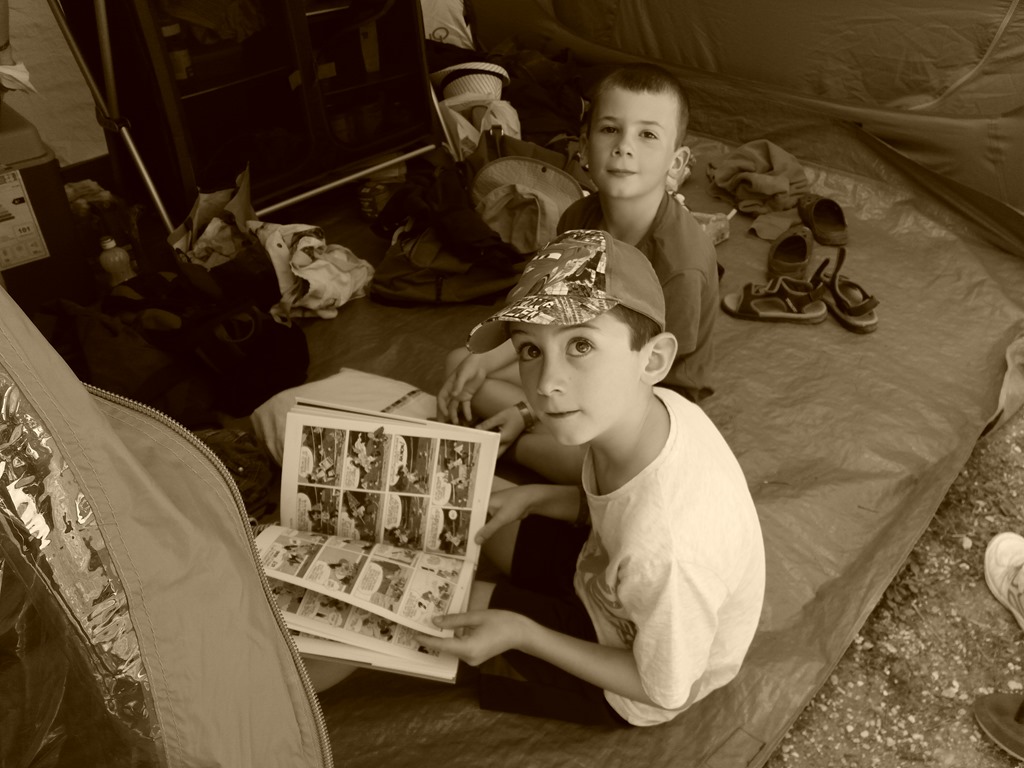 Dimanche matin,à 8h, malgré nos appels, les oiseaux qui chantent et la vie du camping, Samuel et Nathanaël dorment toujours.