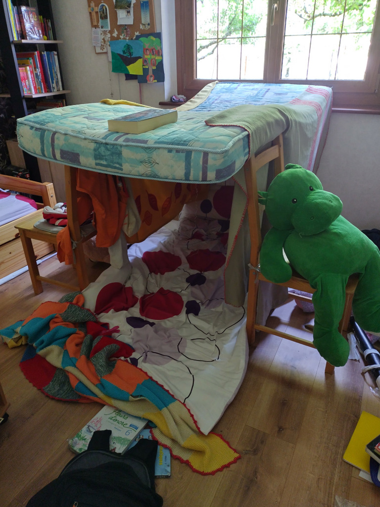 Après avoir fait étape chez ma sœur, nous sommes allés chez Caroline et Maxime pour une après-midi « jeux ». Les équipes ont été formées par nos hôtes, et nous avons fait diverses épreuves. Passe-trappe, Molky, course de grenouilles, curling, équilibre, pétanque, bâtonnets de Fort Boyard, Tir de précision….