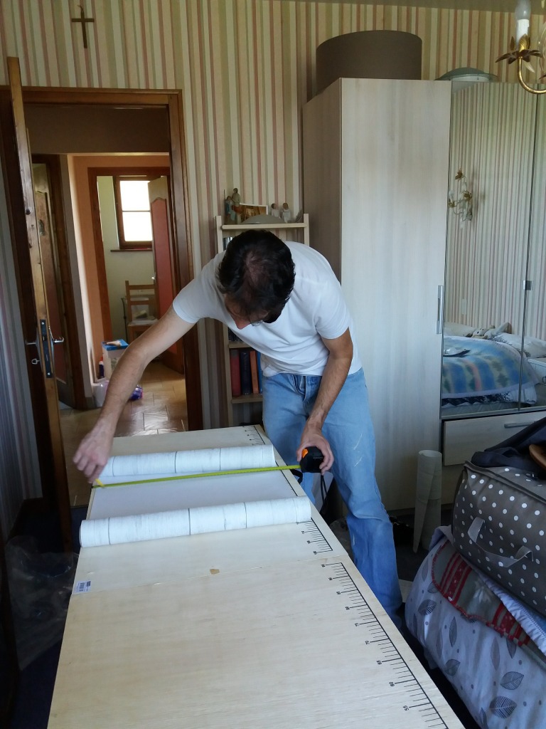 Jean-Christophe a posé le papier-peint dans les WC. Voici les différentes étapes.