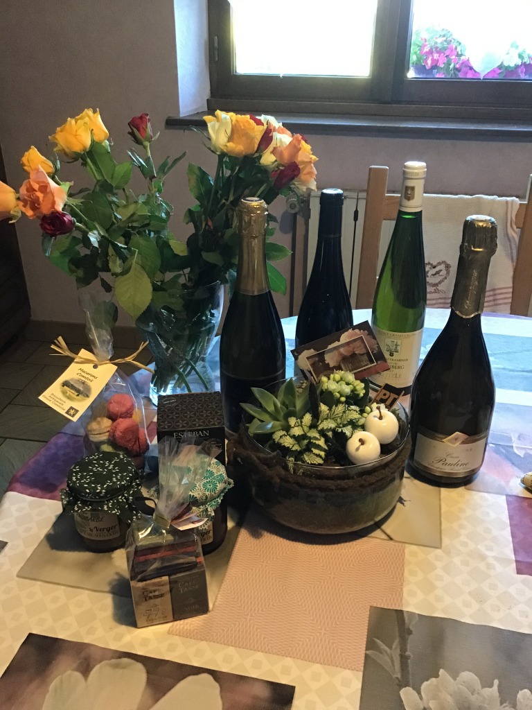 L’agence immobilière a organisé une crémaillère dans notre jardin. Elle a invité nos nouveaux voisins, et à notre grande surprise, ils sont venus. Alors que nous étions assez septiques, on s’attendait à être six… Ils sont tous arrivés en même temps (une bonne vingtaine de personnes), les bras chargés de cadeaux.