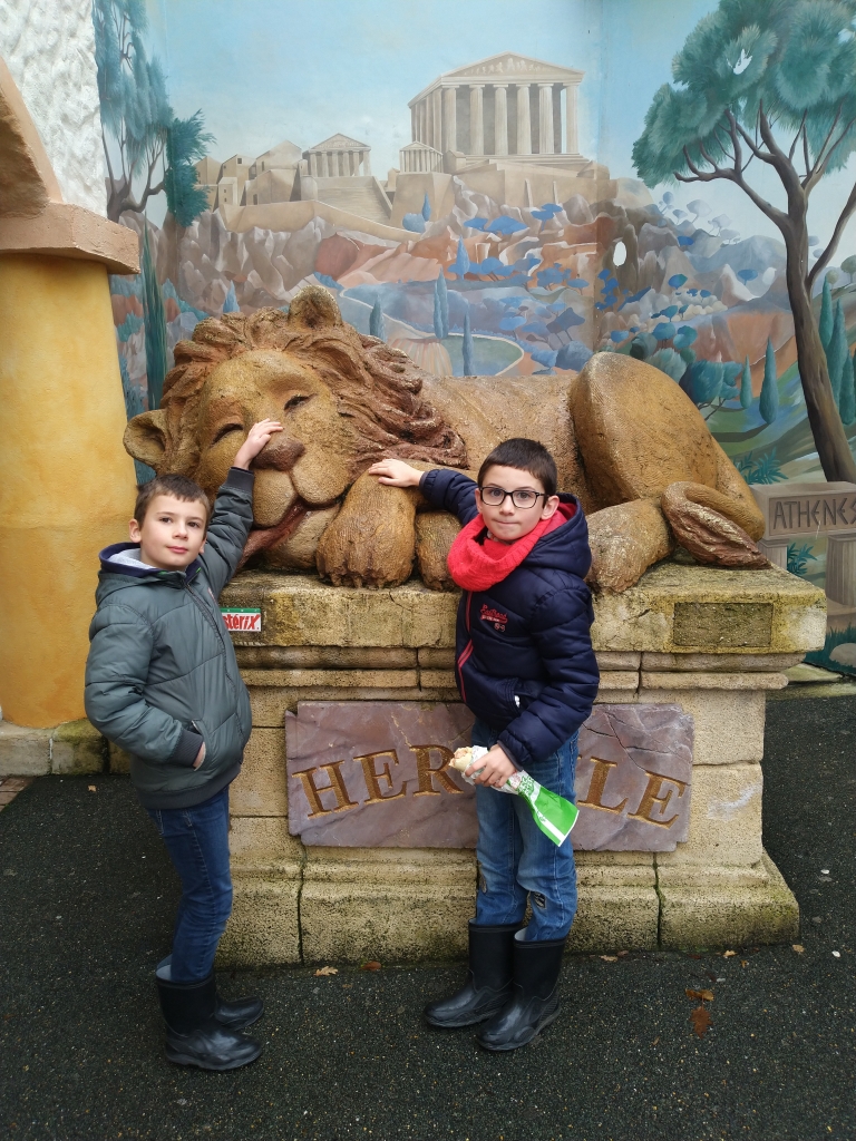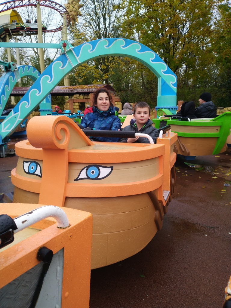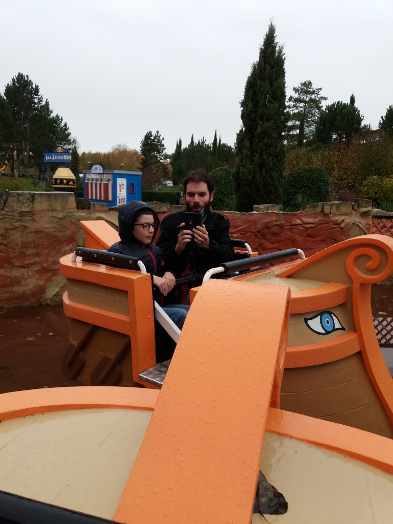 Et puis nous sommes passés à côté du Tonnerre de Zeus, l’attraction que j’avais adorée en 2007 quand j’avais accompagné les ados du centre de loisirs (ça nous rajeunit pas), et donc j’ai embarqué toute la famille là-dedans. Un autre grand huit avec une énorme descente dès le début et beaucoup d’autres tout le long du circuit. Bon, une fois dans l’attraction, je me suis demandée si c’était une bonne idée d’avoir emmené les garçons dedans, mais c’était trop tard. Ils ont pris sur eux et en sont sortis indemnes.
