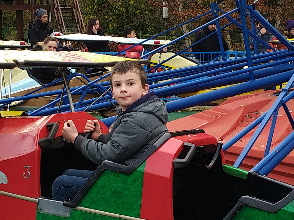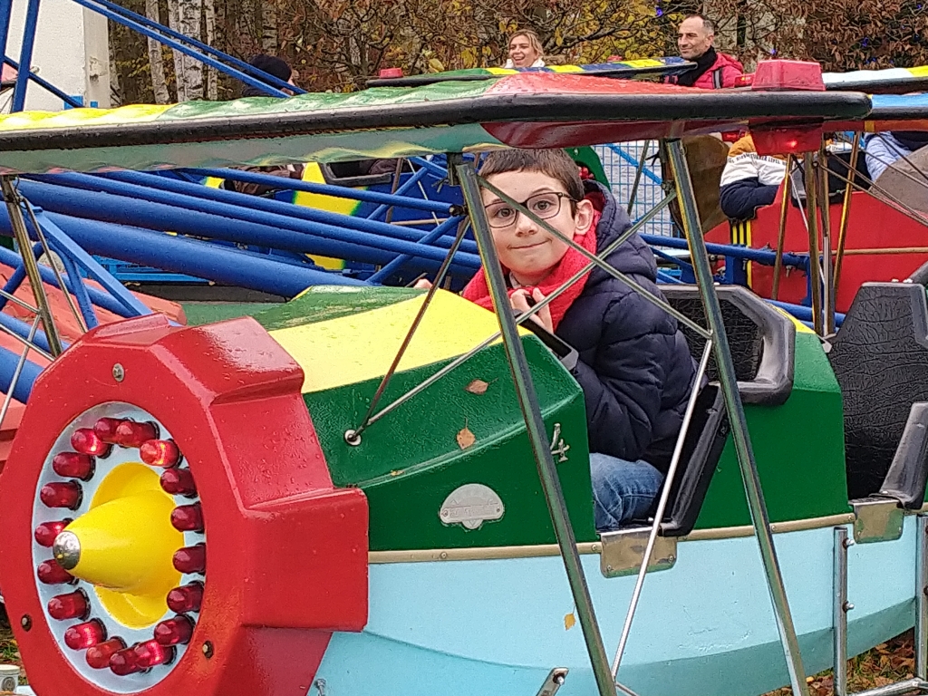 Nathanaël et Samuel ont fait l’escadrille des As, pendant que JC, puis moi faisions le Goudurix, un manège avec plein de loopings.