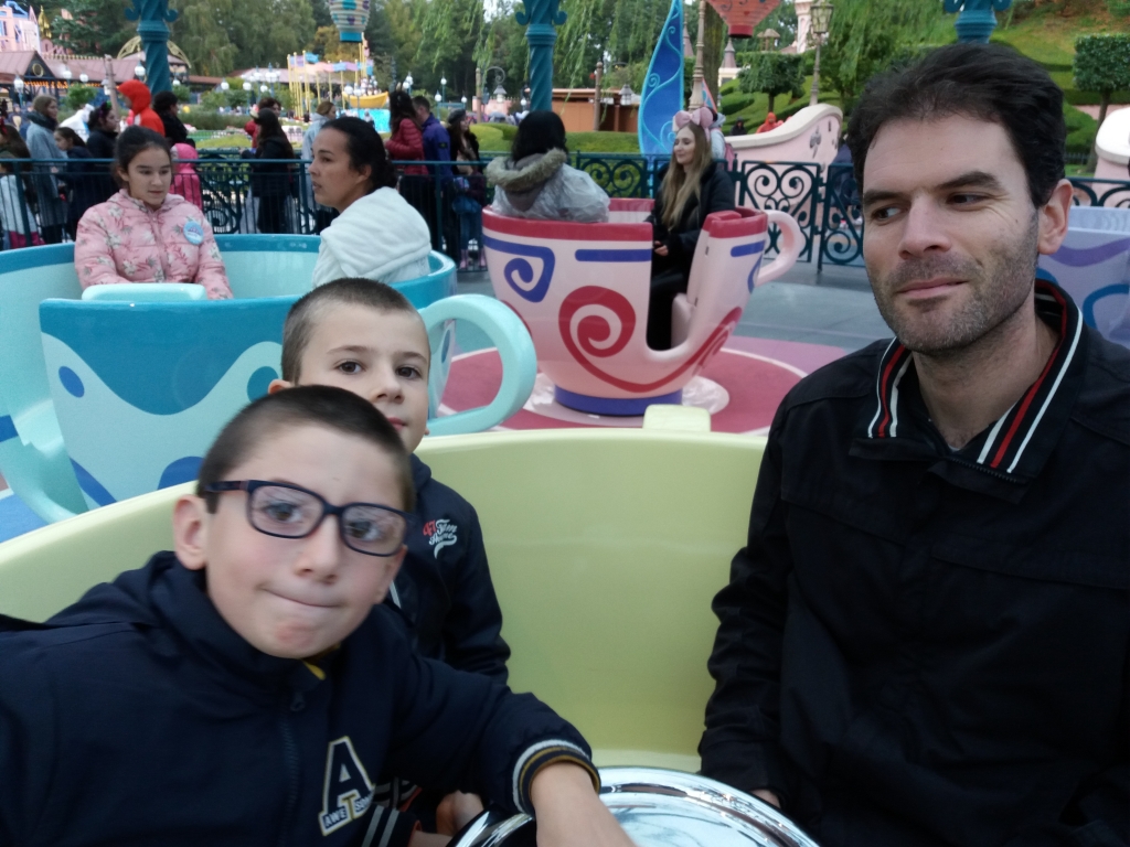Pas de file d’attente ! Du plaisir ! Nous y sommes retournés avec JC. Les garçons nous ont attendu derrière les barrières spéciales situés à côté de l’embarquement à côté des opérateurs et ils nous ont fait « coucou ». On a vraiment apprécié ce manège.
