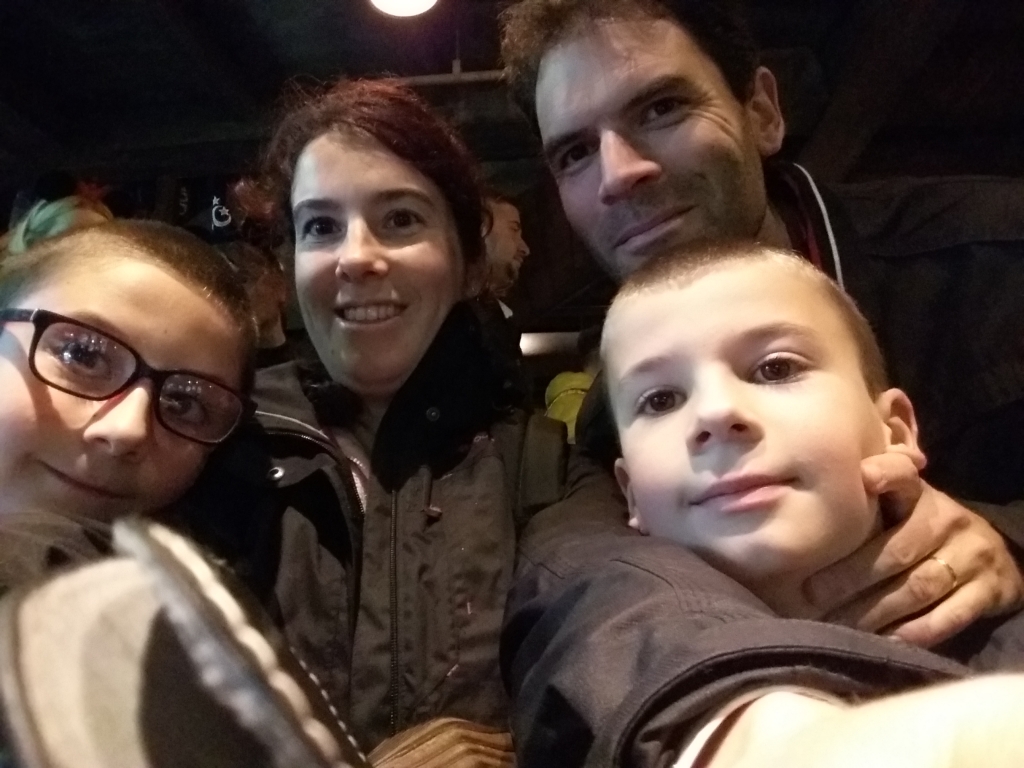 La première géocache a été trouvée facilement. La seconde était en hauteur, alors c’est super papa qui s’y est collé. On a bien ri.