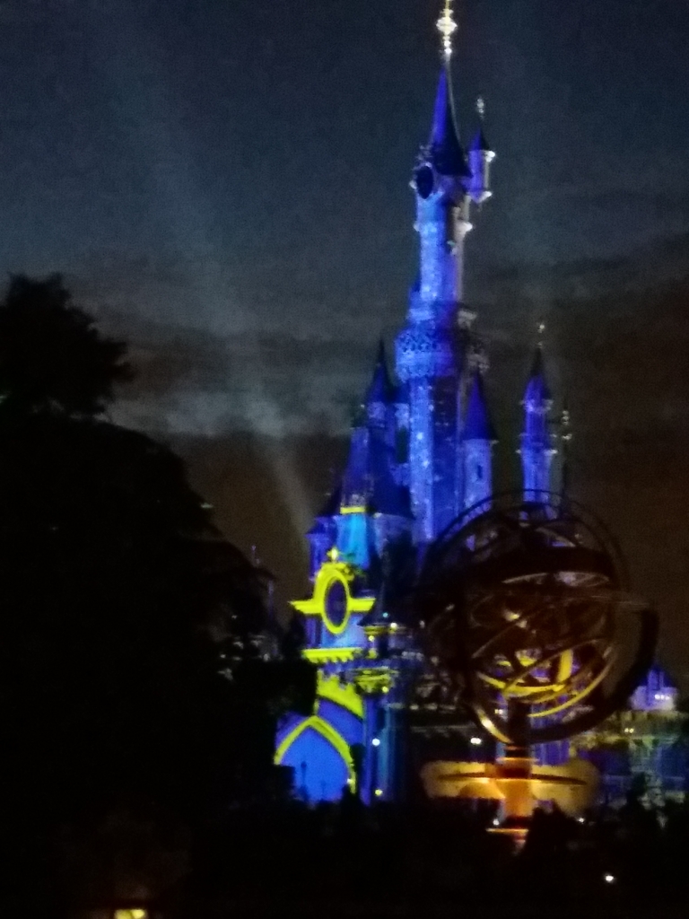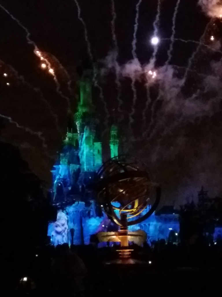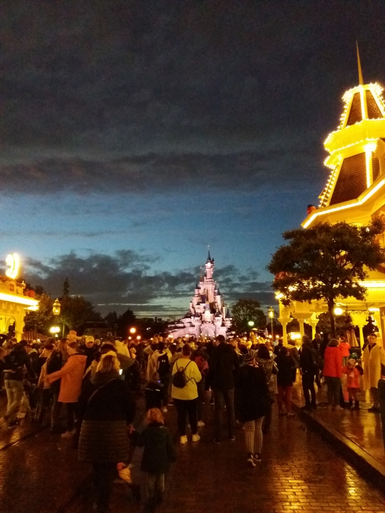 Nous sommes partis après le feu d’artifice. Nous avons passé une bonne journée malgré la pluie et le froid. C’était chouette de ne pas attendre pour monter dans les attractions.