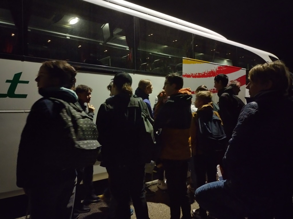 Pour pouvoir profiter à fond du voyage, le départ était à 5h du matin. Nous sommes donc arrivés devant le collège à 4h30.