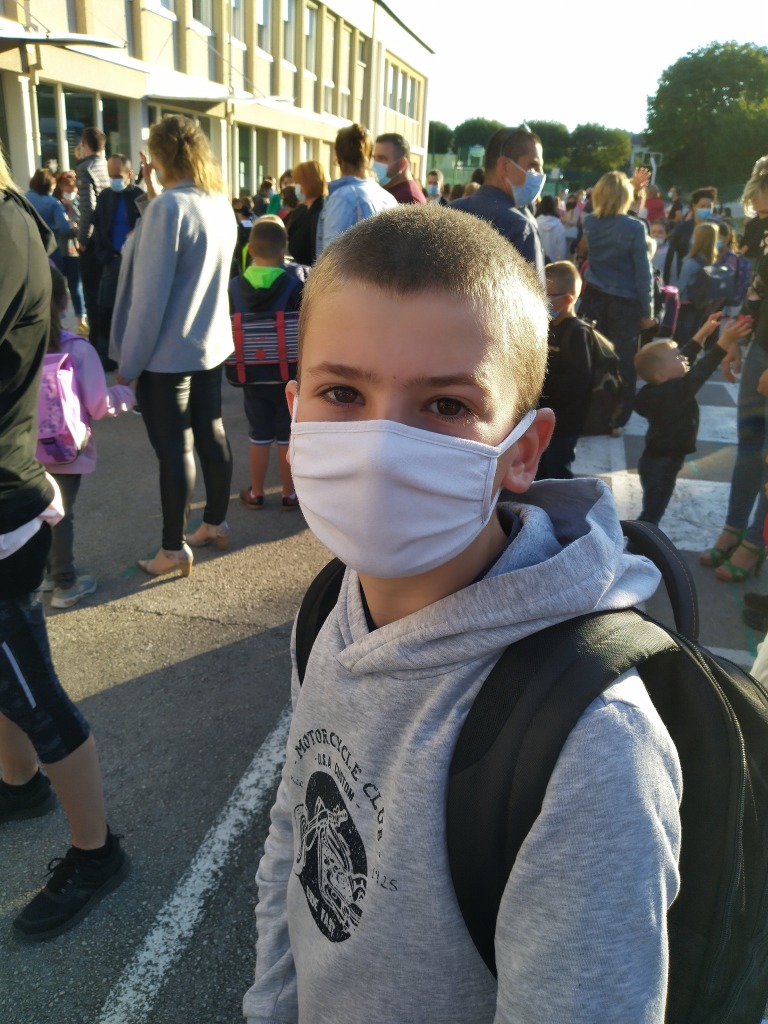 Samuel et moi, sa maman, sommes partis à 7h55 pour une rentrée à 8h15. La principale et son adjointe ont fait l’appel par classe et notre grand bonhomme est parti avec sa classe de 6°2.