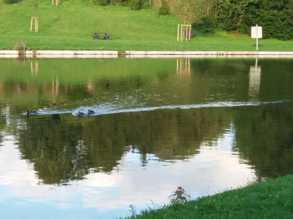 Vendredi, nous avons récupéré nos garçons à Doubs dans la matinée. Nous avons rempli le frigo. Nous avons mis 1000L de fioul dans la cuve. Samuel et Jean-Christophe sont partis en vélo prendre rendez-vous pour l’entretien de la voiture chez Peugeot. Nous avons continué le rangement et le soir, nous sommes partis faire une balade en passant par l’étang de la Lièze.