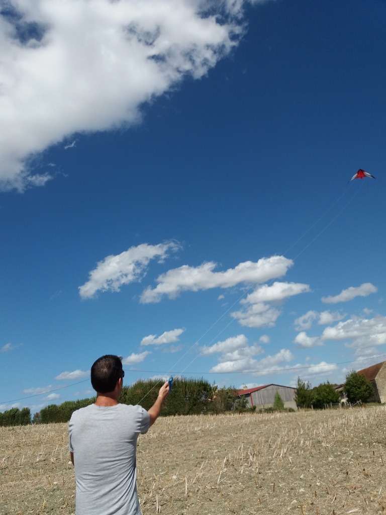 Le vent était bien présent hier. Nous avons pu faire à peu près 2 heures de cerf-volant. On en a vraiment bien profité.