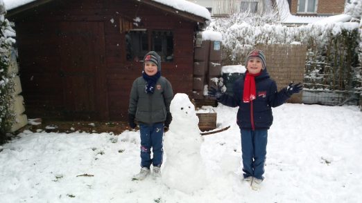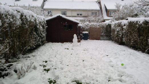 Et puis ce midi, j’ai reçu un sms m’informant que le sport des garçons était annulé, donc on a fait un bonhomme de neige dans le jardin.