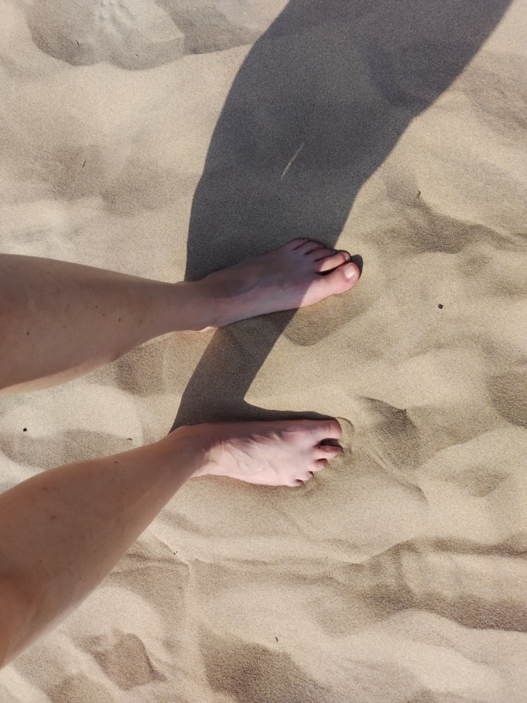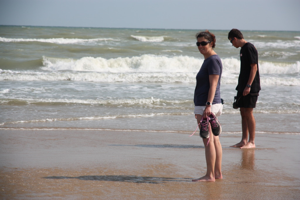 A présent voici des photos de la plage et du trempage des pieds avant la baignade.