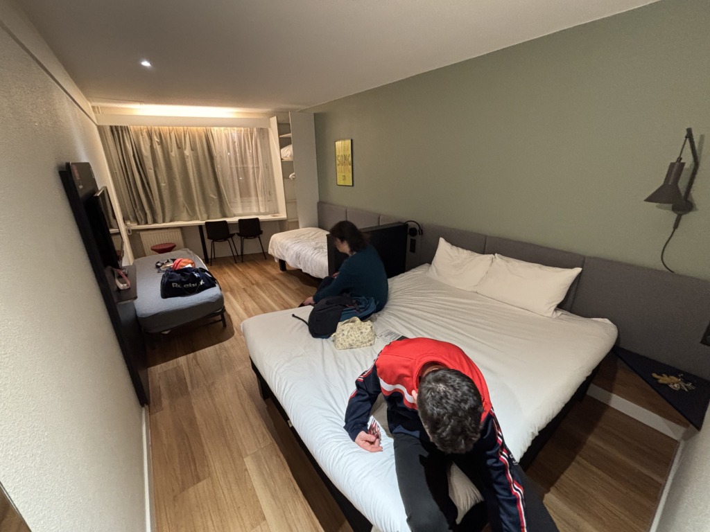 Nous sommes partis poser nos affaires dans notre chambre d’hôtel. Chambre qui n’était pas prête à notre arrivée, alors on patiente.