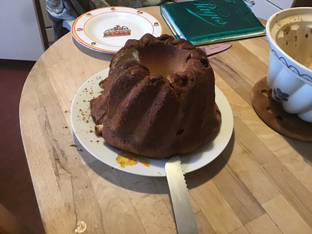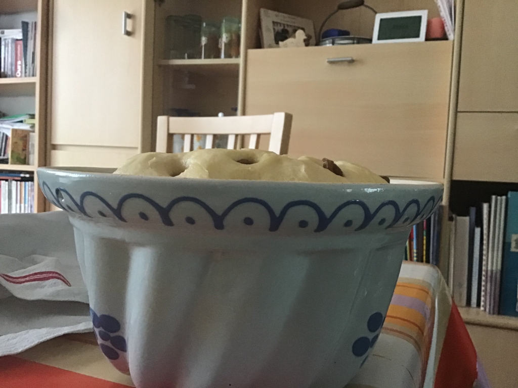 Bravo Tante Nicou. Tu es la seule à avoir joué et tu as gagné. Il s’agit bien d’un kugelhopf et c’est la recette de Papapa, celle à pâte riche que tu nous as donnée.
