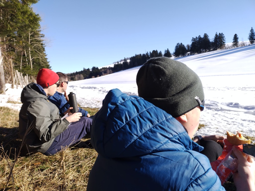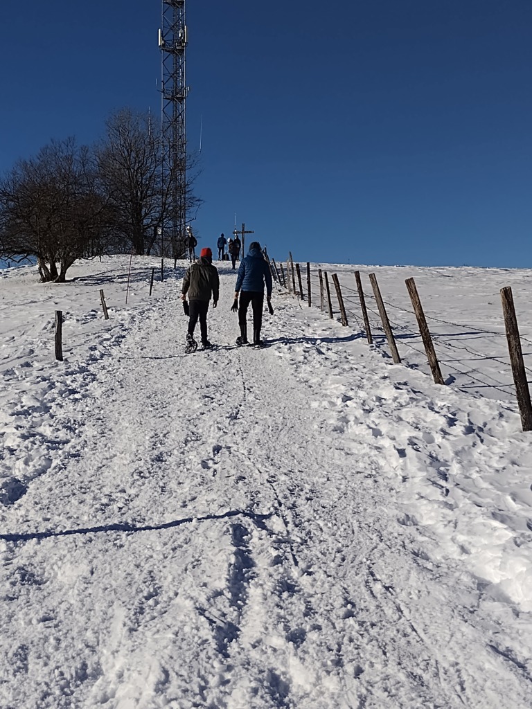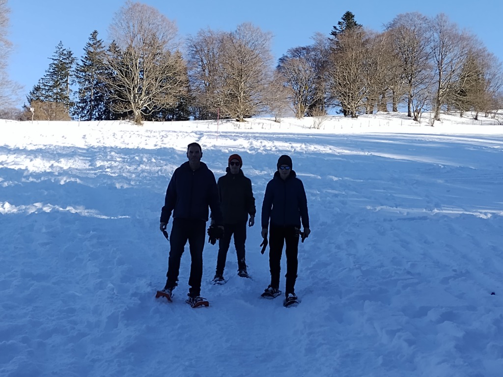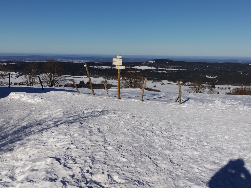 Lors de cette randonnée, nous avons pu voir le Mont Blanc et les Vosges (ballon d’Alsace et Grand Ballon). Les raquettes, c’était une première pour nos garçons, nous avions oublié que c’était fatiguant.