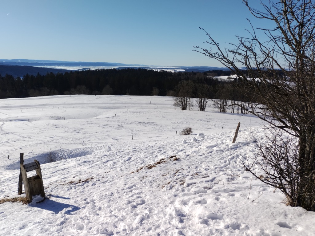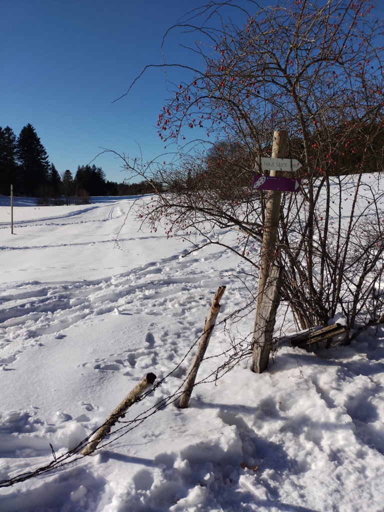 Nous sommes repartis en direction du Crêt Monniot pour chausser les raquettes et faire le tour du Haut Mont.