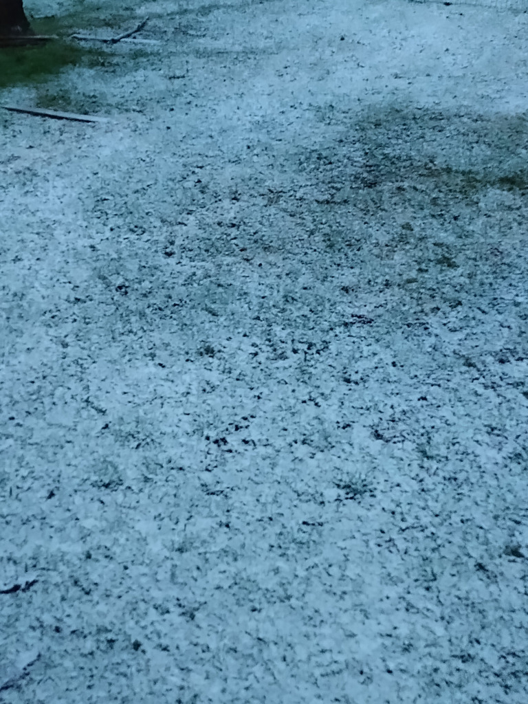 À 5h00, quand JC est parti travailler, il pleuvait des cordes. Une heure et quarante-cinq minutes plus tard, une fine pellicule de neige recouvrait le sol.