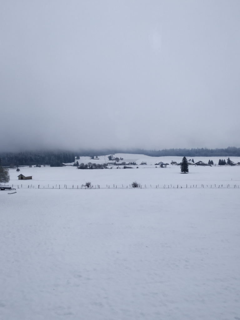 Vers 11h00, Jean-Christophe a trouvé de la neige vers Gilley et en Suisse.