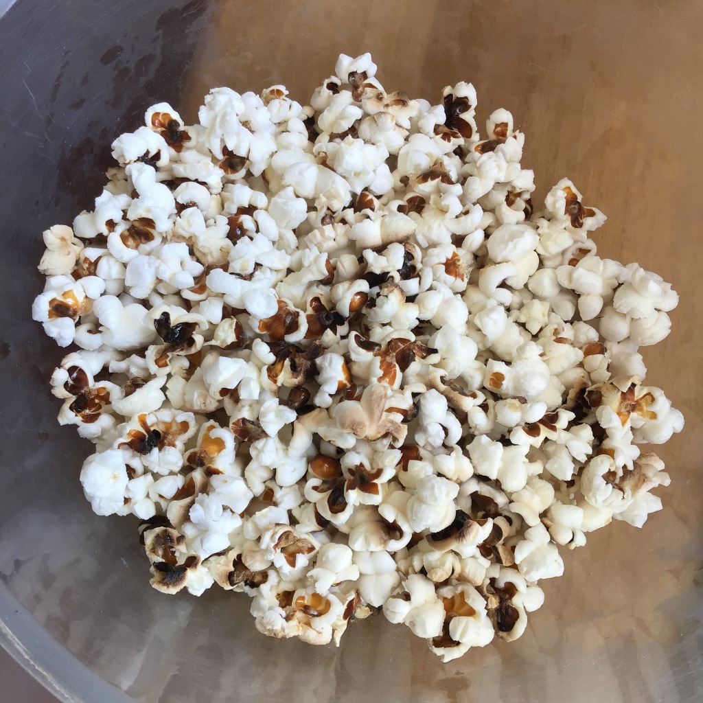 Hier, nous avons cuit notre récolte de l’été dernier. Ça ne représentait pas grand chose, mais nous avons tout de même dégusté notre popcorn devant un film au goûter.