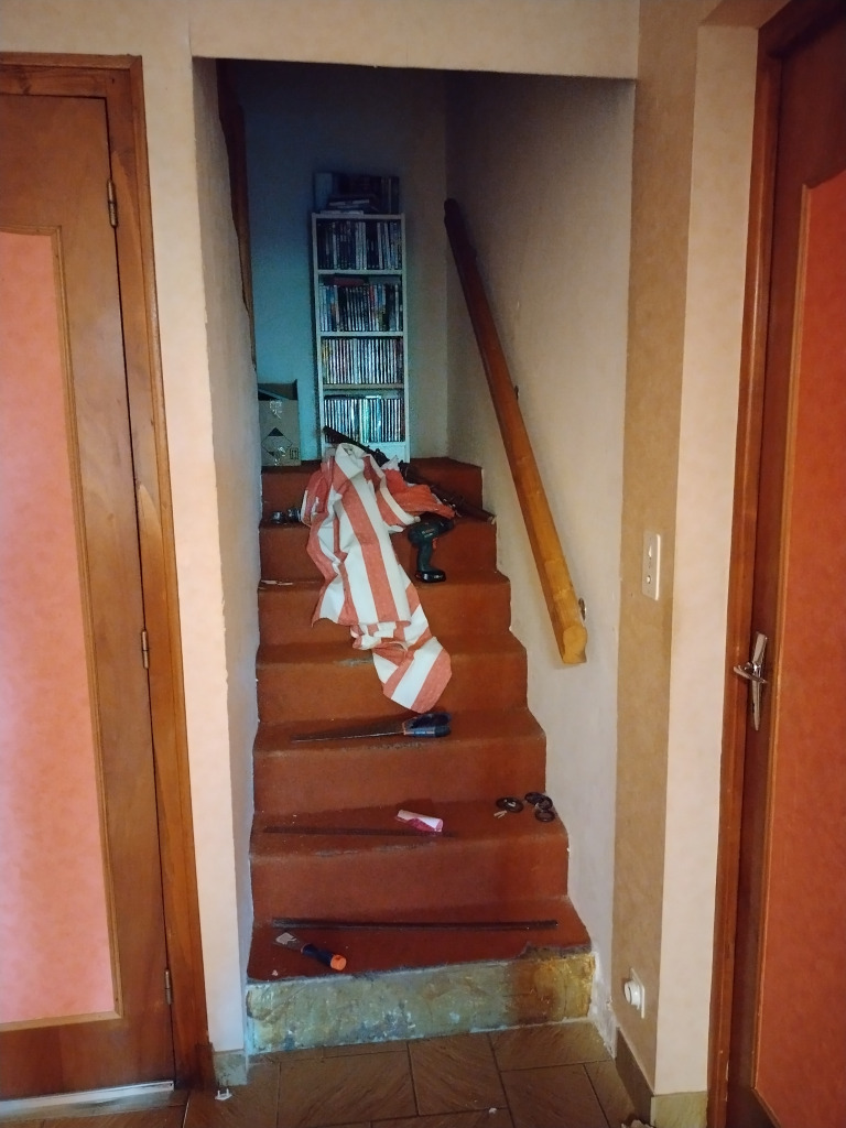 Vous noterez même si ça ne se voit pas, que j’ai retiré le crépi de chaque côté de cet escalier.