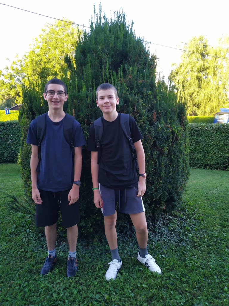 Samuel a bien fait sa rentrée en quatrième toujours avec option latin. Nathanaël a également bien fait sa rentrée en cinquième classe environnement. Cette après-midi, lors de ce cours, ils ont récolté des patates.
