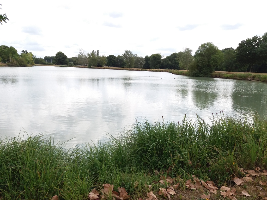La pluie est présente jusque dans les Landes (c’est Jean-Christophe qui transmet l’info, car moi, je fait mon premier roupillon du voyage, je ne me réveille qu’après Bordeaux). Ensuite, le soleil est de retour, et les paysages s’enchaînent jusqu’à midi. Nous sommes en Sologne, il y a un lac, un banc, un pêcheur, l’endroit idéal pour pique-niquer.