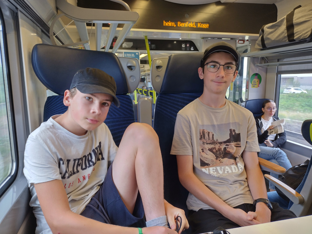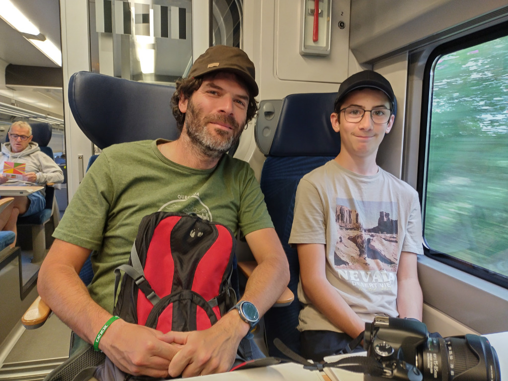 Il pleut, nous retournons à la Fnac (Nathanaël y laisse sa casquette au rayon BD, heureusement, il a un super bob à pois pour continuer les vacances) avant de reprendre le train pour Mommenheim, puis la voiture pour retourner au gîte.