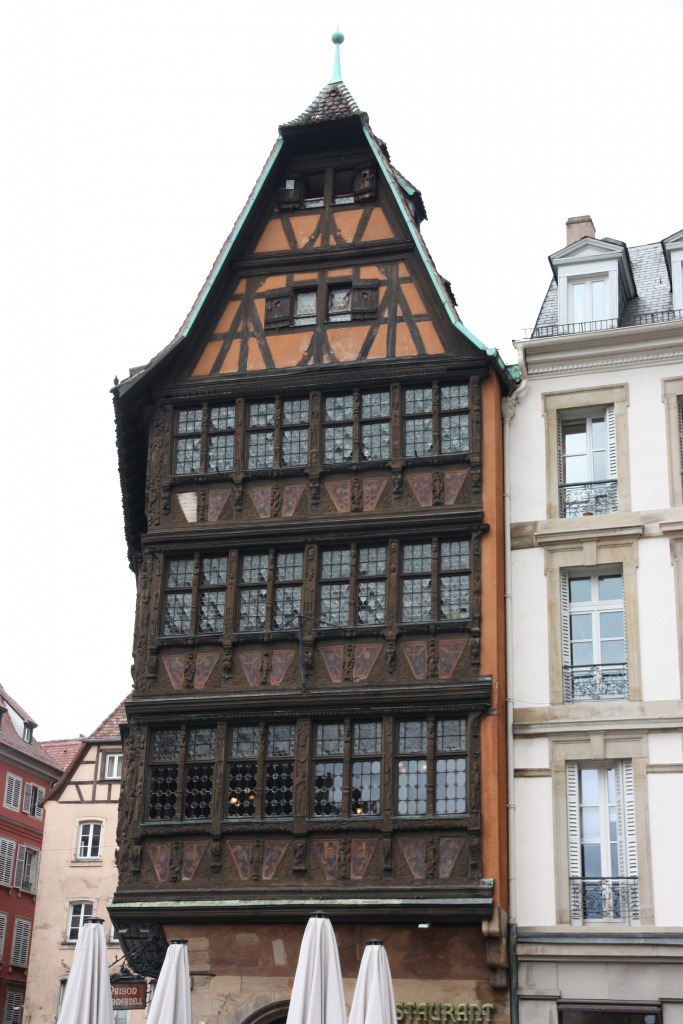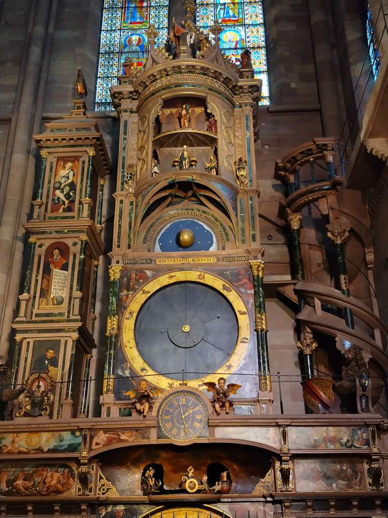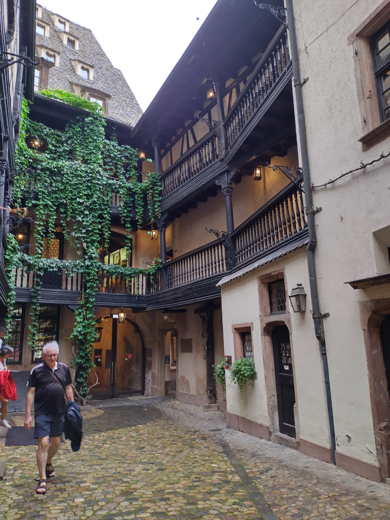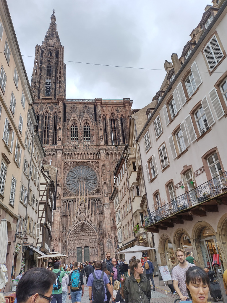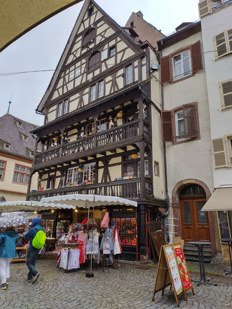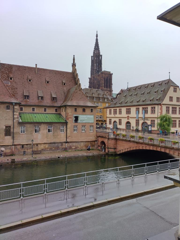 Comme il est 11h30, nous ne pouvons pas entrer à moins d’aller assister au spectacle de l’horloge. Nous allons nous abriter à la Fnac et retournons dans le quartier de la Petite France pour manger dans un restaurant bien agréable.