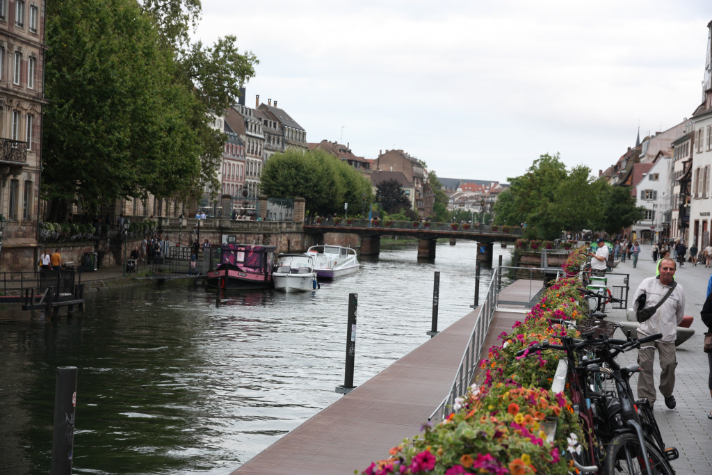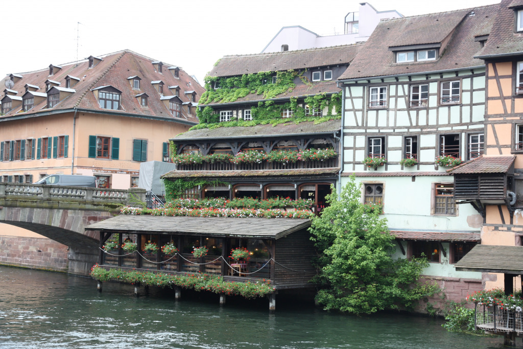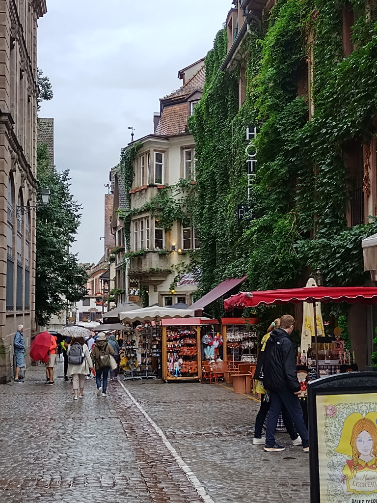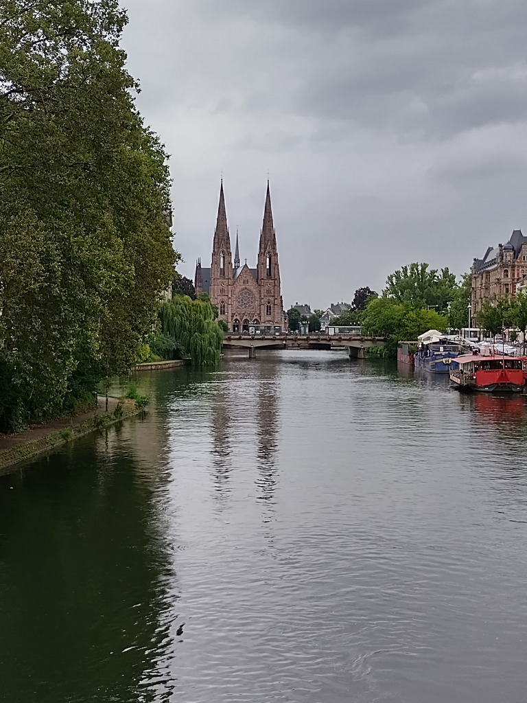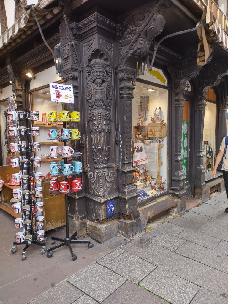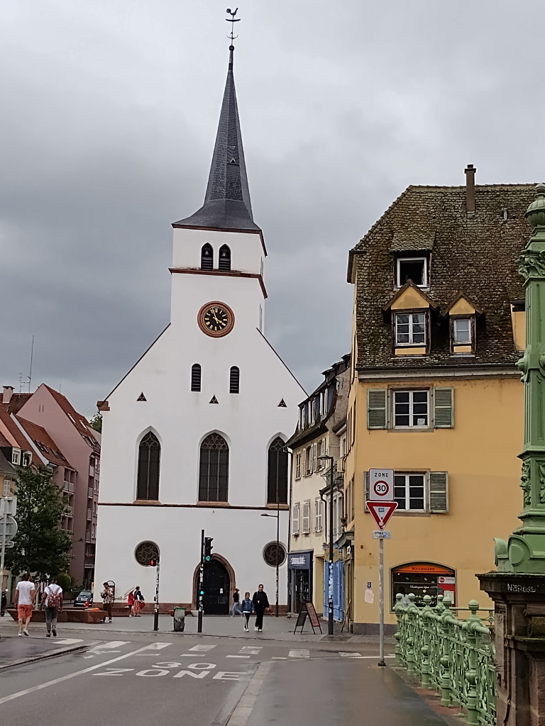 Comme il est 11h30, nous ne pouvons pas entrer à moins d’aller assister au spectacle de l’horloge. Nous allons nous abriter à la Fnac et retournons dans le quartier de la Petite France pour manger dans un restaurant bien agréable.