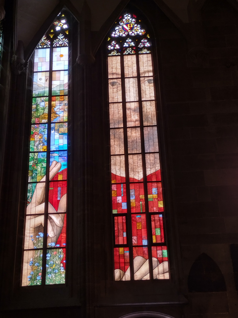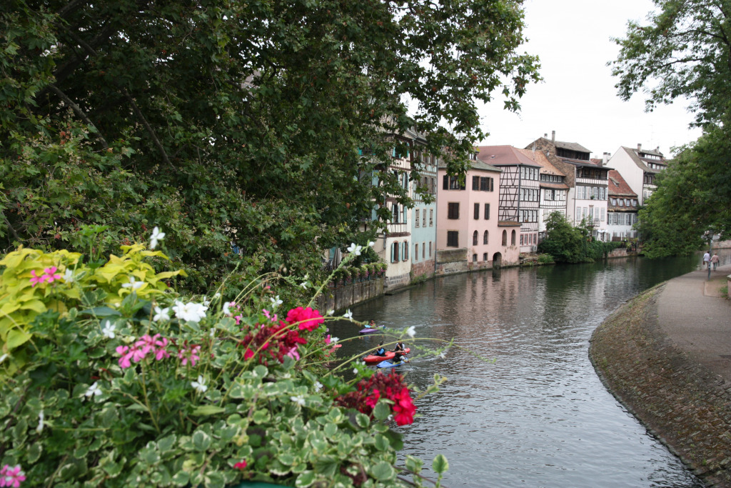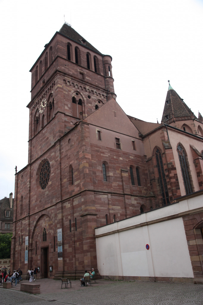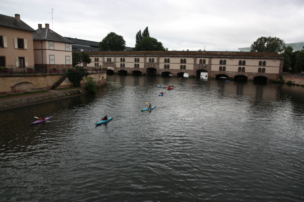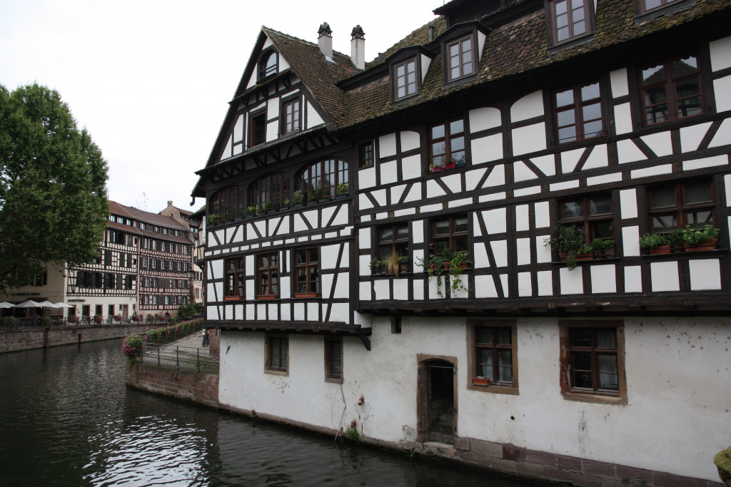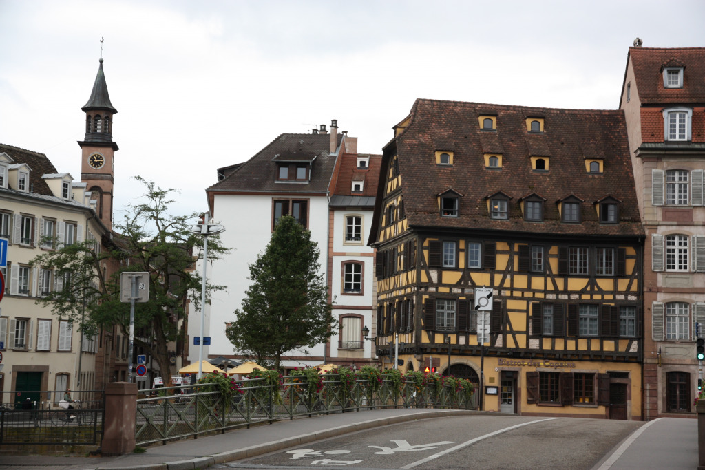Comme il est 11h30, nous ne pouvons pas entrer à moins d’aller assister au spectacle de l’horloge. Nous allons nous abriter à la Fnac et retournons dans le quartier de la Petite France pour manger dans un restaurant bien agréable.