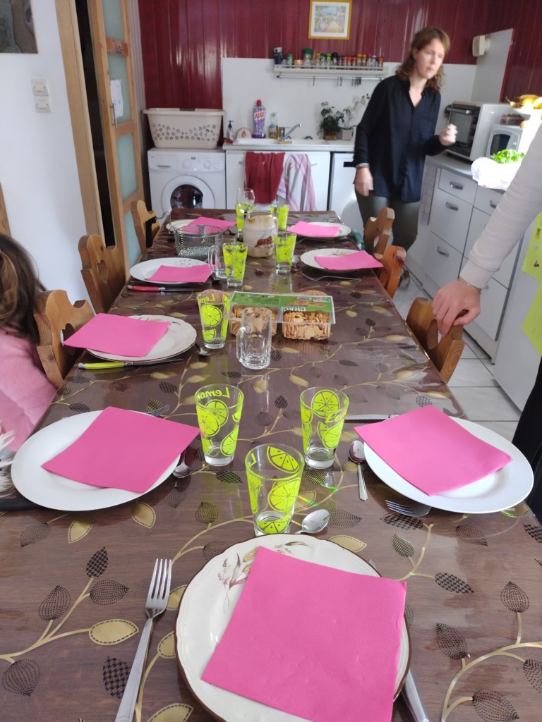 Vendredi, mes parents ont covoituré et sont donc venus me chercher pour aller à l’enterrement de mon grand oncle Raymond (frère de ma mamy Betty). Jean-Christophe et Nathanaël sont partis se promener en moto l’après-midi puisque Jean-Christophe travaillait le matin. Le soir, nous avons accueilli Nelly (ma marraine de confirmation), Rithou, Thomas (tante et cousin), et mes parents. Neuf personnes à table pour manger des pizzas et de la glace.