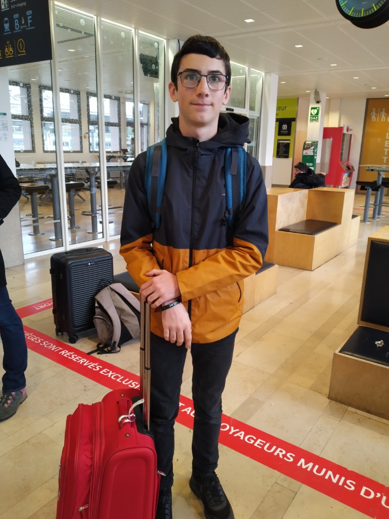 Ce matin, Jean-Christophe a emmené notre grand Samuel (ainsi qu’un copain qui était avec lui en 6° et une prof) à la gare de Besançon pour qu’il parte via les rails en Allemagne.
